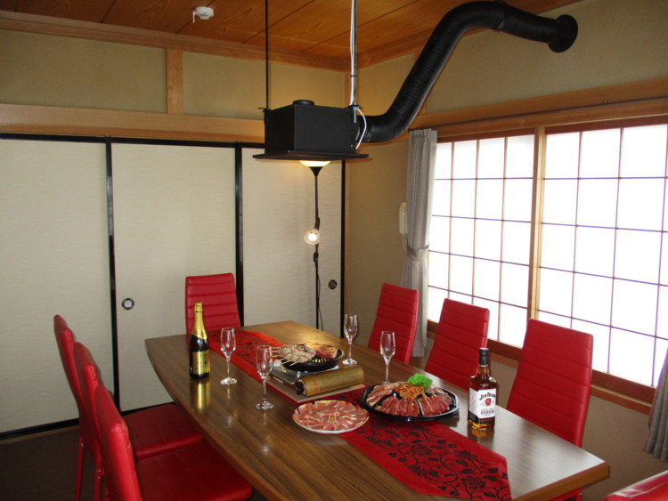 - 屋根付BBQ … 室内に排煙設備がある焼肉ルーム(BBQルーム)を完備していますのでご家族・友人で焼肉や鍋料理などをお楽しみいただけます。 焼肉機材セット(焼肉コンロ・焼肉プレート・トング・取り皿)は有料です。1セット¥2,000 食材の調達は車で1分、徒歩6分にスーパーマーケット(イッツモア赤坂)があります。 ※調味料・油・焼肉のタレなどのご用意はございません。お持ち込み下さい。