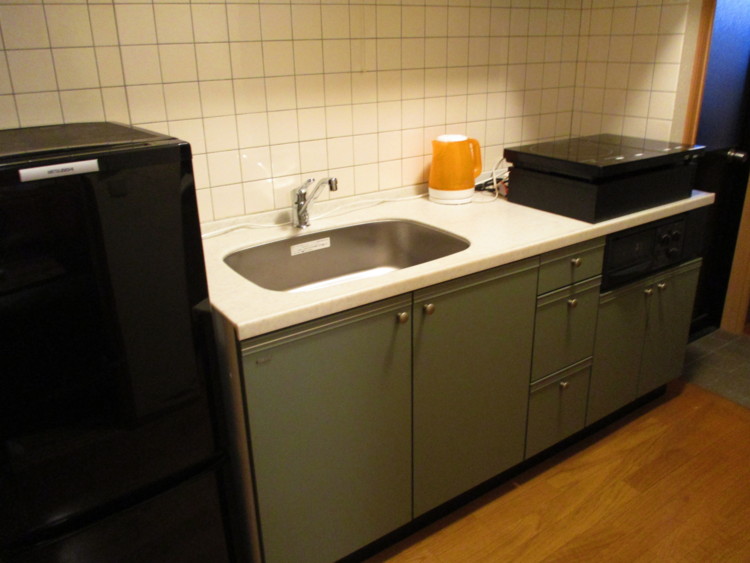 システムキッチンがあります。調理器具・食器などすべて揃っています。